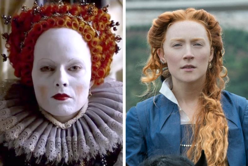 The most favourable criticisms have been those which have recognised and accepted the feminist element of the narrative and the two central performances—“communicating strength, vulnerability and isolation as two monarchs ruling in a man’s world […] a case for re-examining the patriarchal historical truths we’ve come to accept.”59 The screenplay was criticised for presenting Mary as a fresh-faced “woke underdog princess” who displays 21st century values, supports religious freedom, is fertile, sexually fulfilled and encouraging to her gender-nonconforming friend in contrast with an Elizabeth who is a less attractive, over made-up, childless, unhappy spinster with a prosthetic nose.60 (Fig. 5)